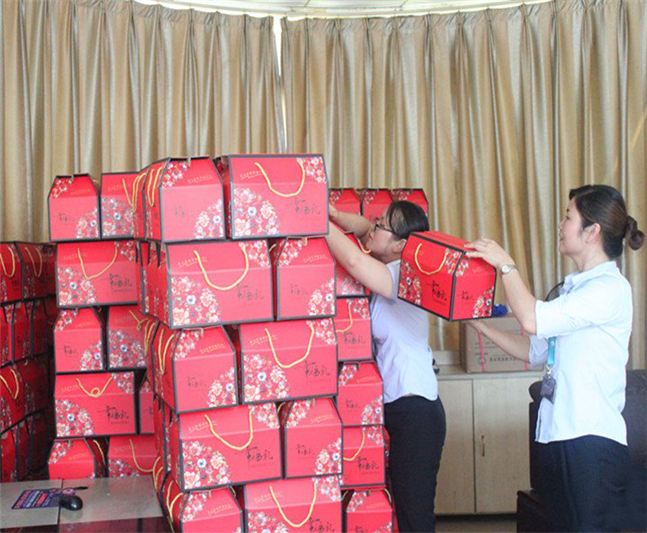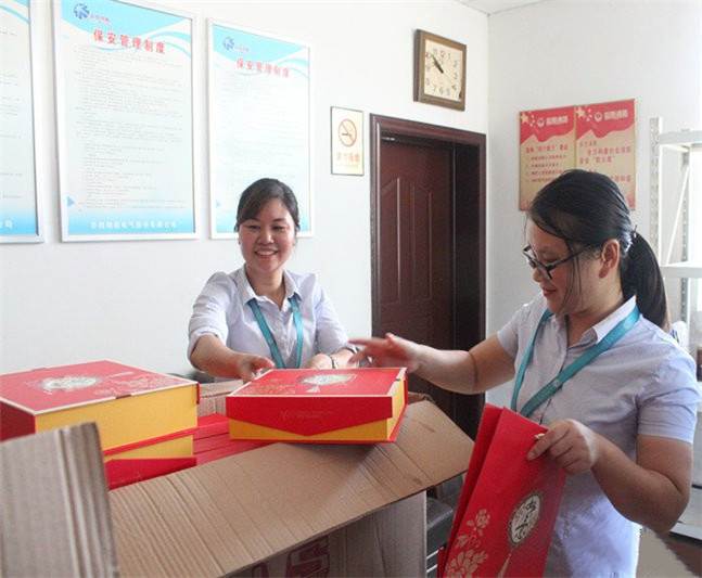 Huaxiang Xiangneng specially bought some mooncakes, walnuts and red jujubes for the staff who could take home and share with families to celebrate the Mid-Autumn Festival.