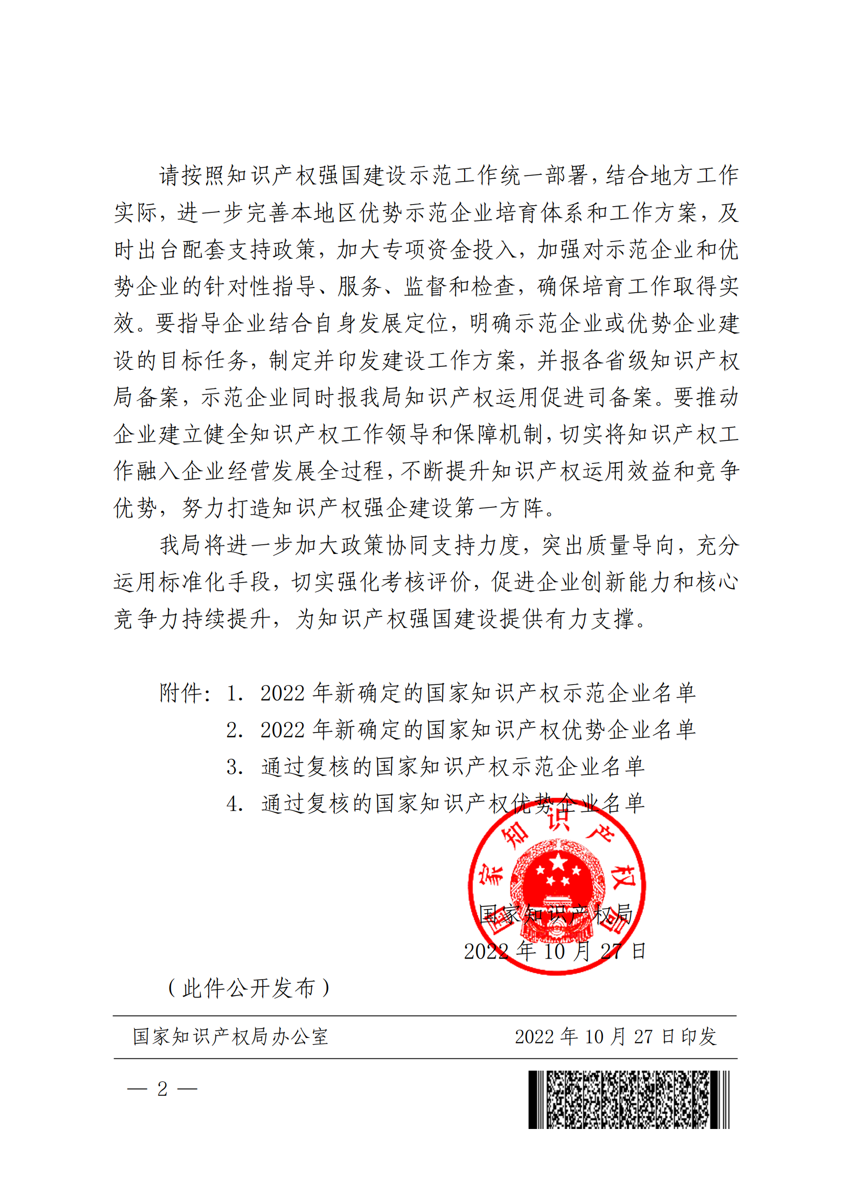 近日,根据国家知识产权局《根据2022年度国家知识产权优势企业和示范企业评定结果的公示》和《2022年度国家知识产权优势企业名单》,华翔翔能科技股份有限公司被评定为2022年度国家知识产权优势企业。