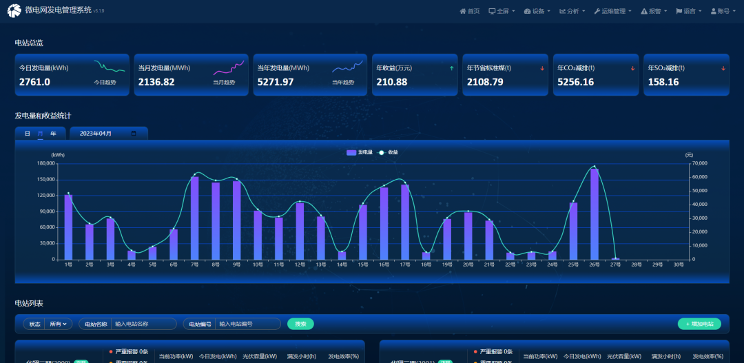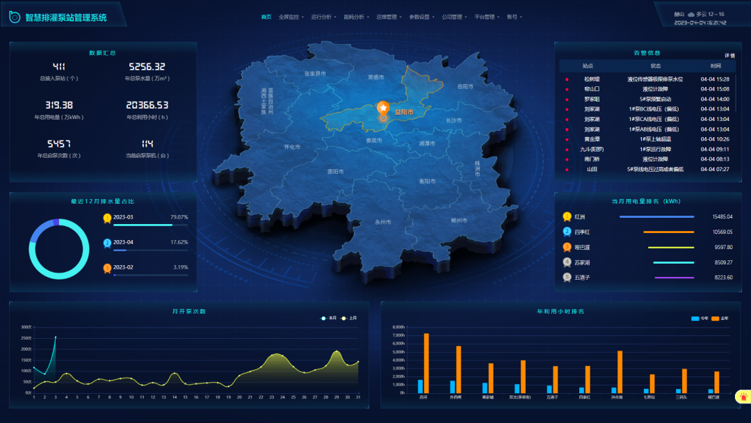 目前通过自主研发“智慧排灌泵站管理系统”“微电网发电管理系统”“综合能源管理系统”等信息化平台,为企业提供从建设到运维的综合解决方案,提供全流程服务。总计服务站点超过500+。