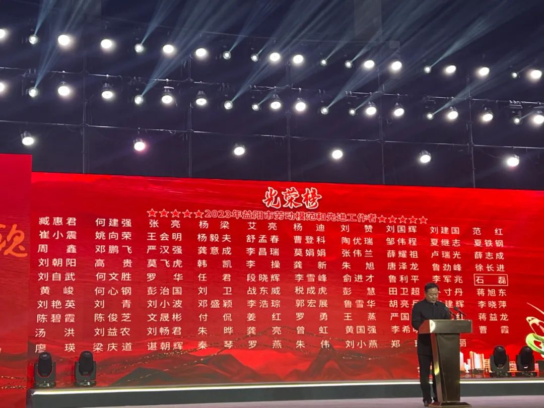 4月27日晚,2023年益阳市劳动模范和先进工作者表彰大会召开,我司臧惠君同志光荣被评为“2023年益阳市劳动模范”。