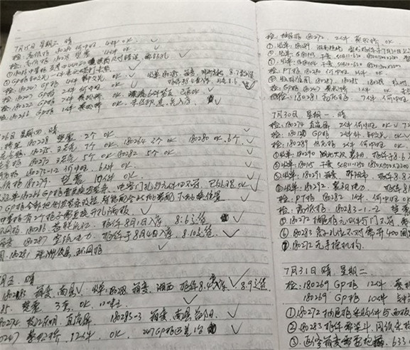 The quality inspector Mr. Xiong Zhiqi has two notebooks on which he clearly recorded various problems he found during inspection, including dates, weathers, models and results.